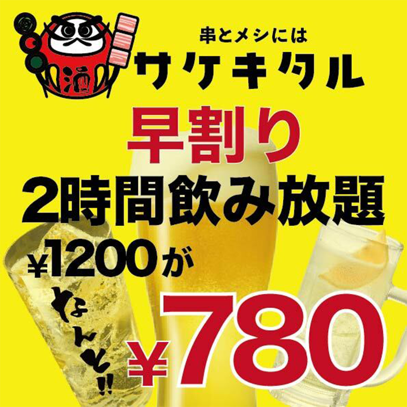 2時間単品飲み放題 1,200円 ⇒ 780円